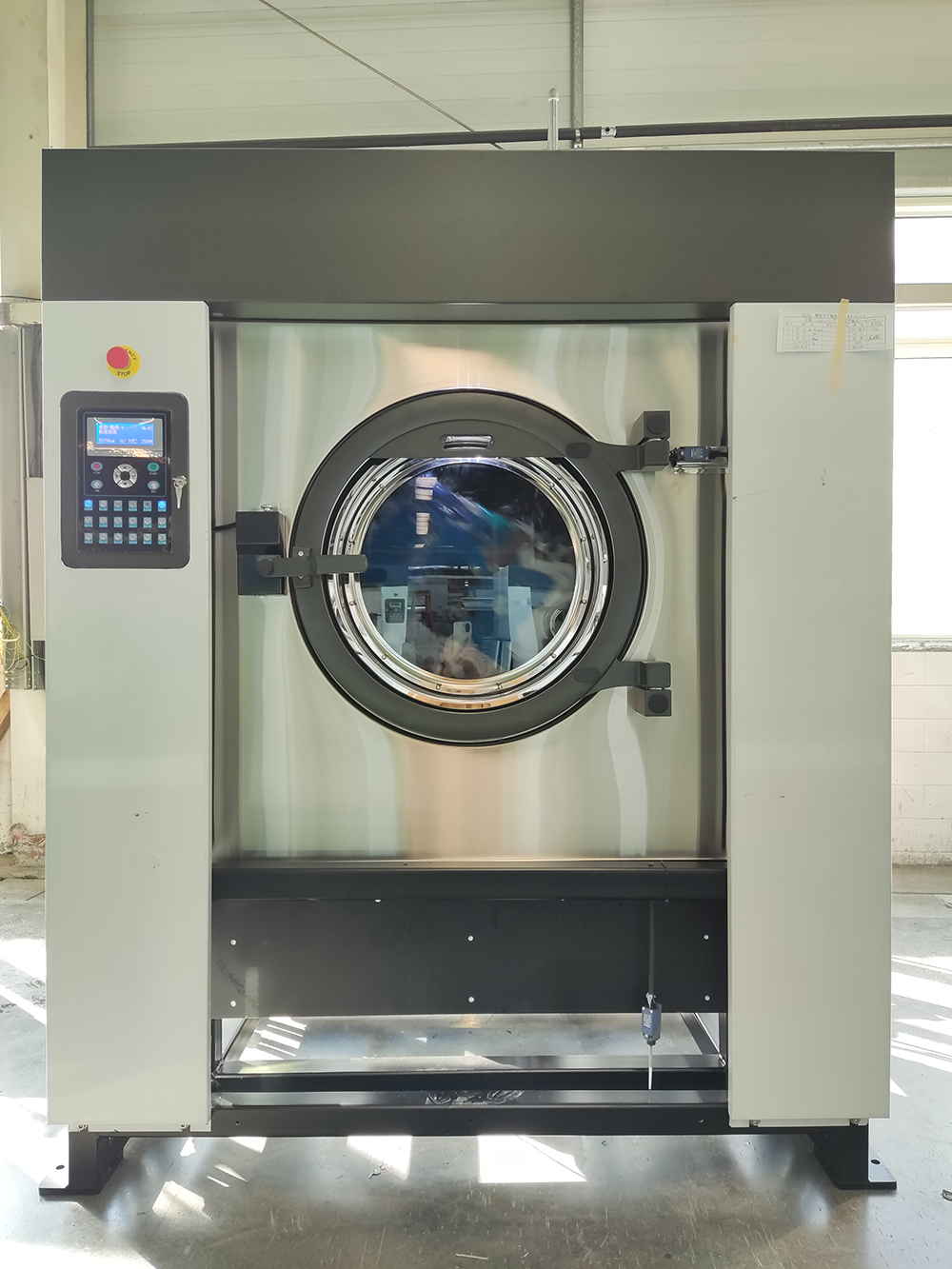 (1)采用先進(jìn)的可編程微電腦控制系統(tǒng),超大屏幕顯示,實(shí)現(xiàn)中文人機(jī)對(duì)話,能自動(dòng)獨(dú)立完成加水、加熱、洗滌、加劑、勻布、脫干等功能,并實(shí)現(xiàn)多種故障自檢和操作提示。